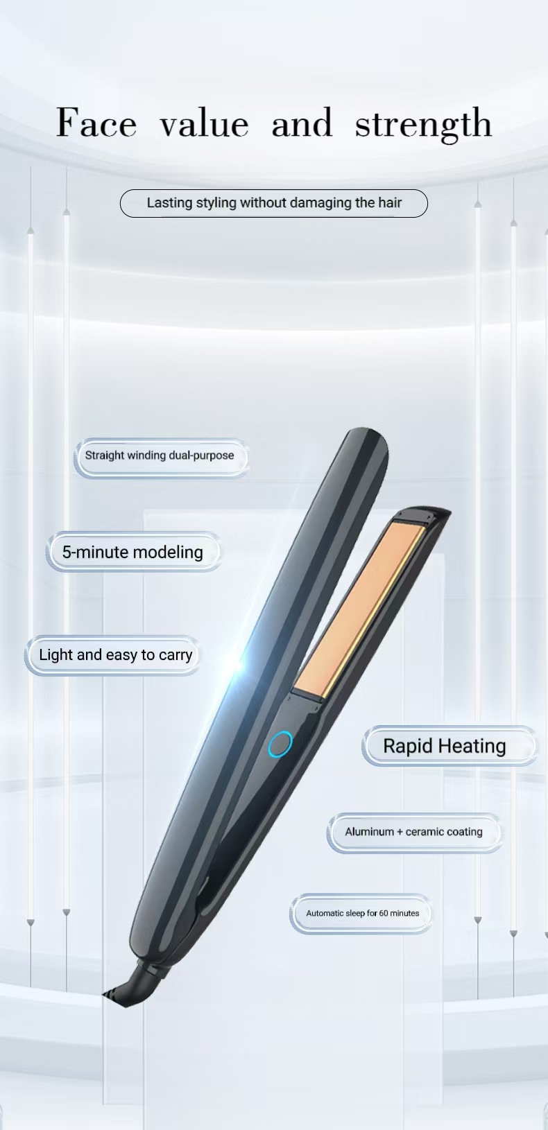 1. Efficient Heating PerformanceMost hair straighteners are equipped with PTC or MCH heating elements, which realize rapid heating(usually reaching the set temperature within 30–60 seconds) and uniform temperature distribution on the panel. This avoids localized overheating that damages hair and ensures consistent styling effects across every strand of hair.