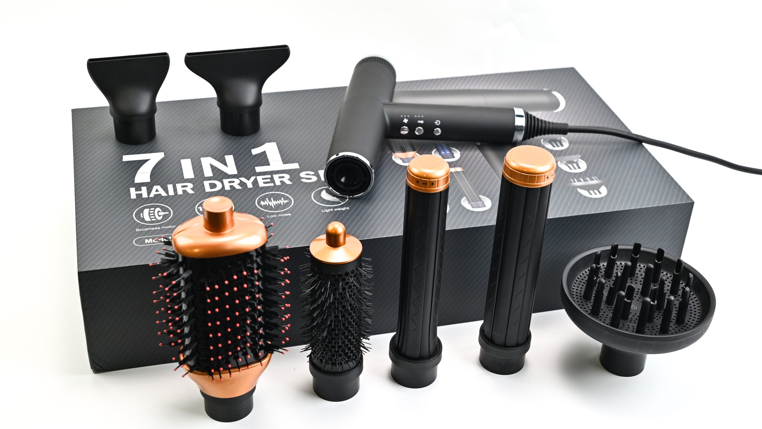Comes with multiple magnetic attachments (concentrator nozzle / diffuser), easy to attach and remove, secure during use, and ideal for creating straight, curly, or voluminous styles.
