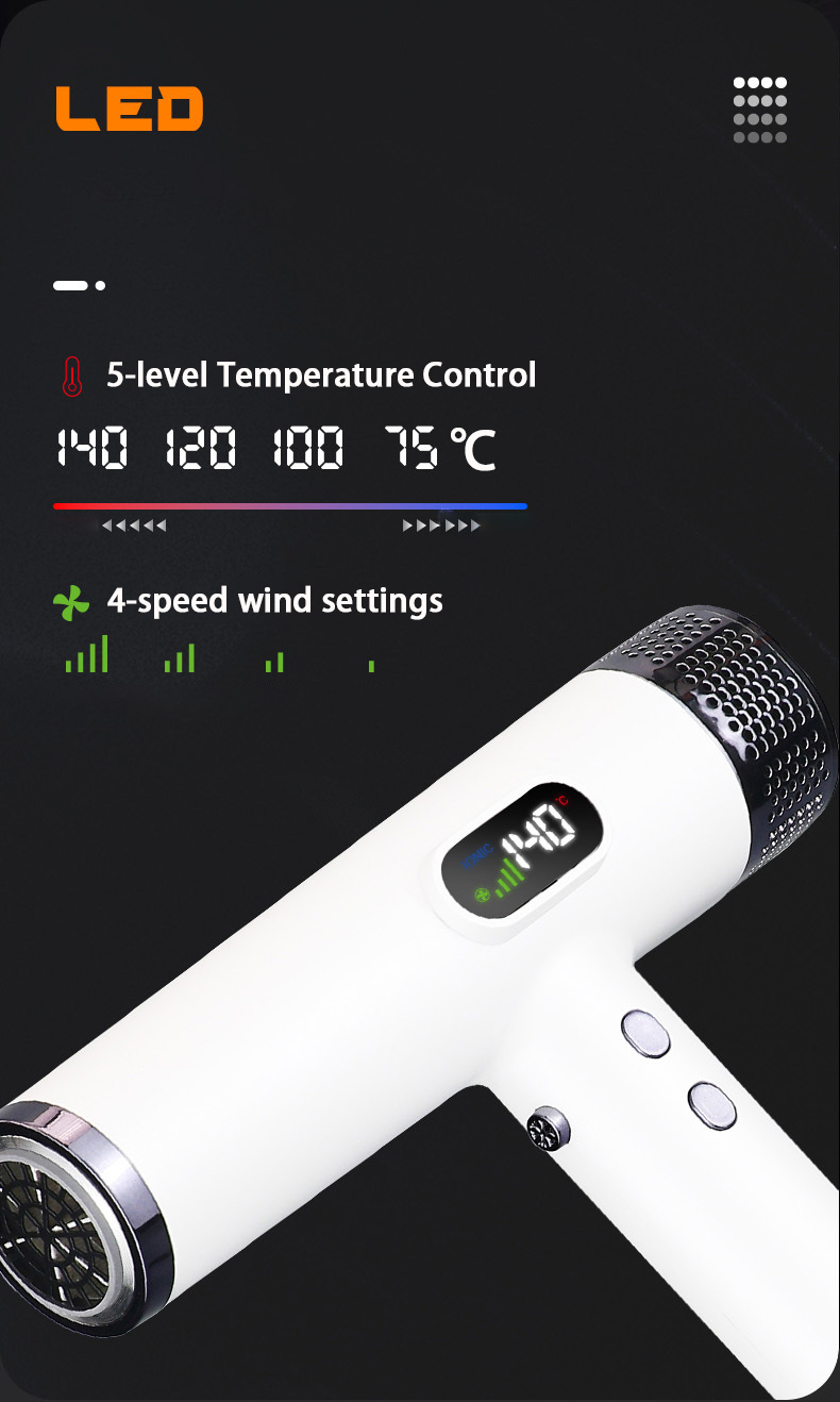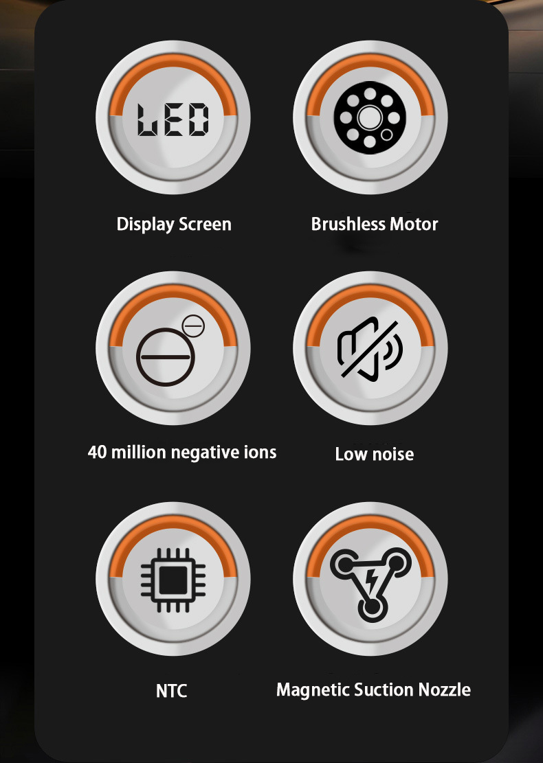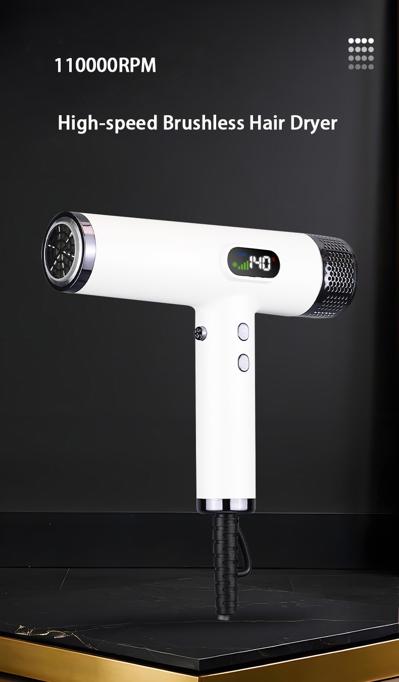 Equipped with a high-speed brushless motor with a rotational speed of over 100,000 RPM, delivering more concentrated and powerful airflow for fast drying, significantly reducing drying time.