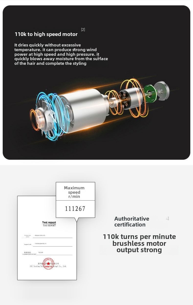 Powered by a high-speed brushless motor that delivers strong and stable airflow for fast drying while maintaining low noise and high energy efficiency.