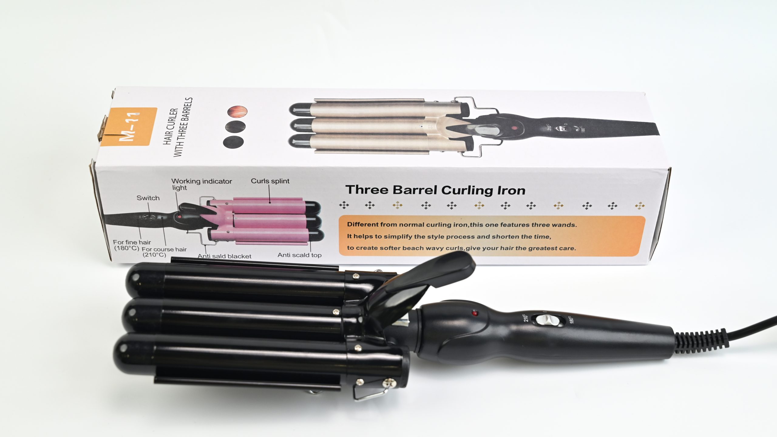 The three-barrel curling iron is a common hair styling tool, which is favored by many consumers for its unique design and functions. Below are its main product features: