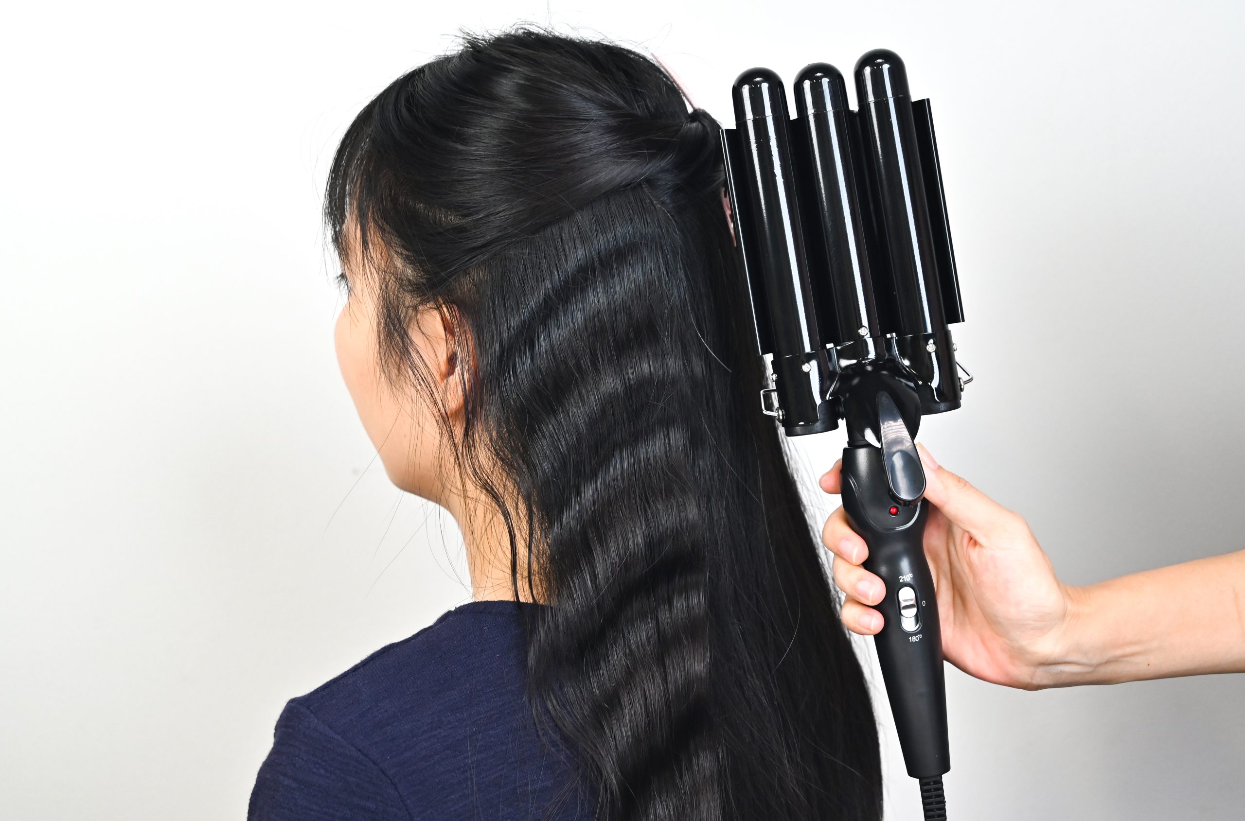 • Natural and even curlsThe three barrels heat and set the hair at the same time, creating more uniform curls and delivering natural wave or egg roll hairstyles that look just like the ones done in a hair salon.