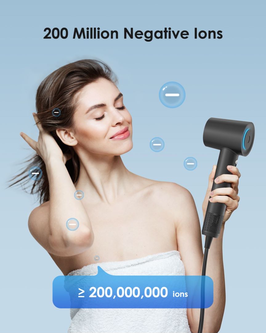 - Strong airflow reaches hair roots directly, significantly reducing drying time