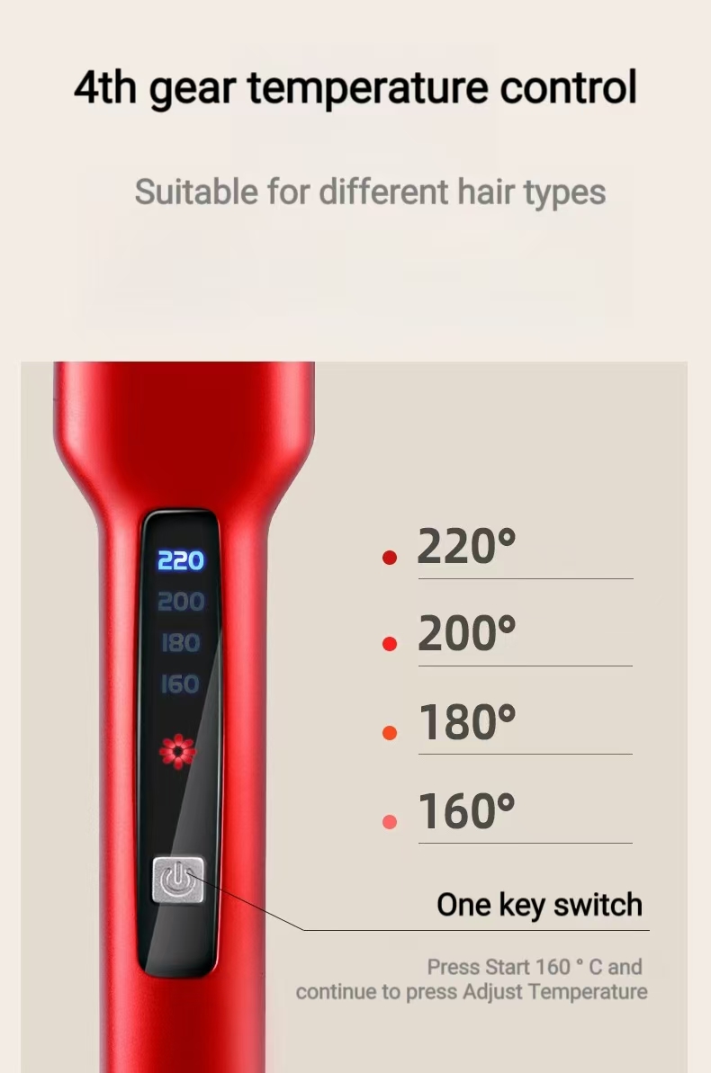 ◦ The display screen can clearly show the real-time temperature and gear position, and supports multi-gear (e.g., 3–5 gears) precise adjustment, which can meet the needs of different hair types such as fine, normal, coarse, and damaged hair (for example, 130°C–150°C is suitable for fine/damaged hair, and 180°C–200°C is suitable for coarse hair). This avoids hair cuticle damage caused by excessively high temperature or styling failure due to insufficient temperature.